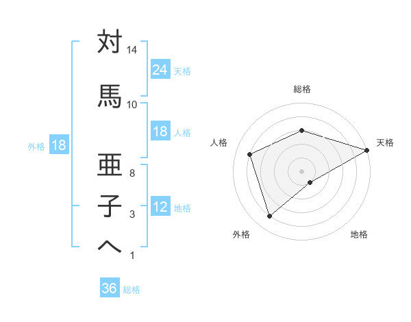対馬 亜子へさんの外格は18画の4点!