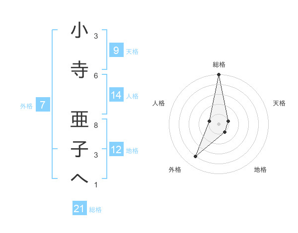 小寺 亜子へさんの総格は21画の5点!