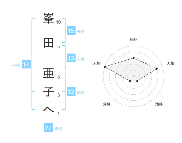 峯田 亜子へさんを姓名の画数から五運を鑑定