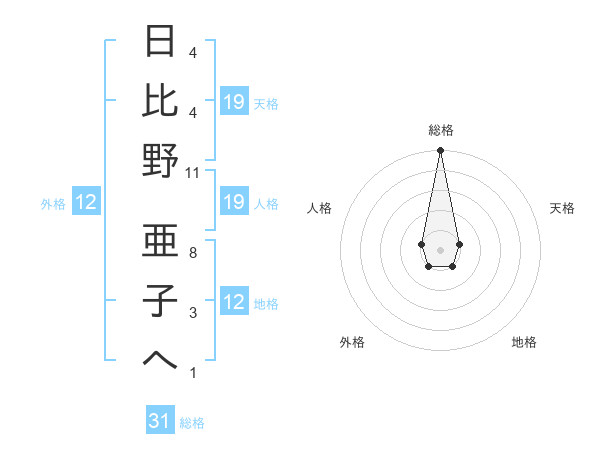 日比野 亜子へさんの総格は31画の5点!