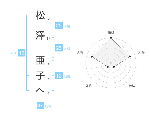 松澤 亜子へさんを姓名の画数から五運を鑑定