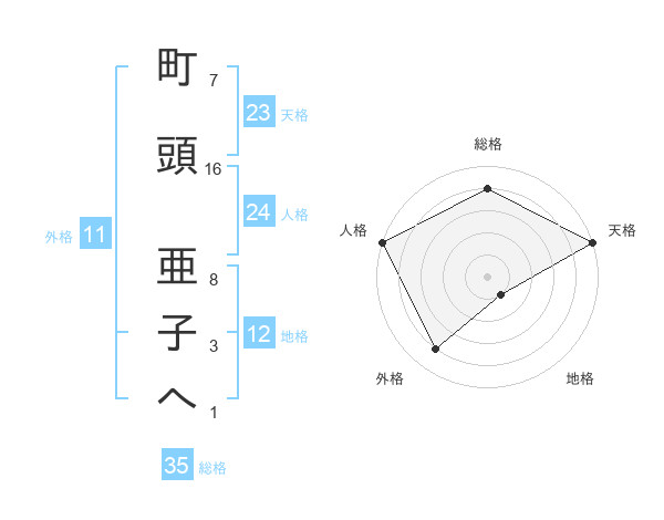 町頭 亜子へさんを姓名の画数から五運を鑑定