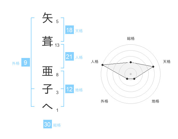 矢葺 亜子へさんの天格は18画の4点!