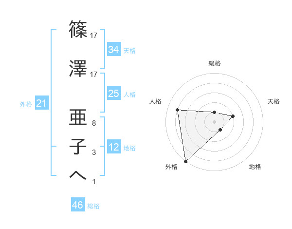 篠澤 亜子へさんの外格は21画の5点!