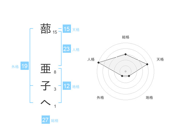 蔀 亜子へさんを姓名の画数から五運を鑑定