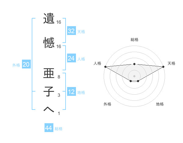遺憾 亜子へさんを姓名の画数から五運を鑑定