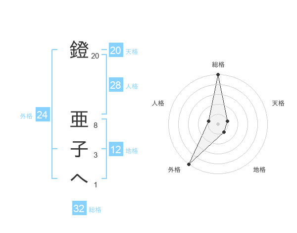 鐙 亜子へさんを姓名の画数から五運を鑑定