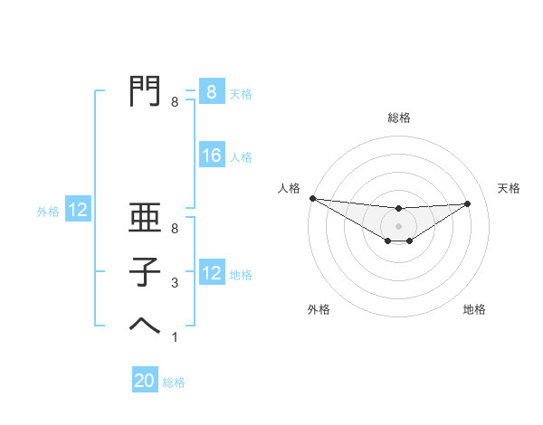門 亜子へさんの天格は8画の4点!