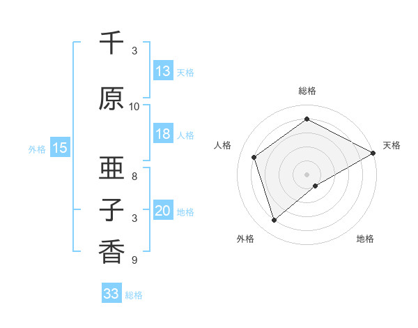 千原 亜子香さんを姓名の画数から五運を鑑定