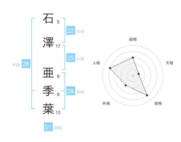 石澤 亜季葉さんを姓名の画数から五運を鑑定