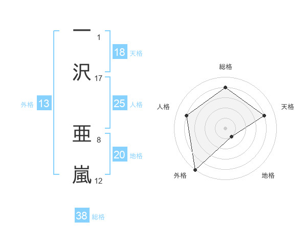 一沢 亜嵐さんの総格は38画の4点!
