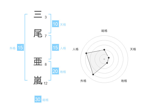 三尾 亜嵐さんを姓名の画数から五運を鑑定