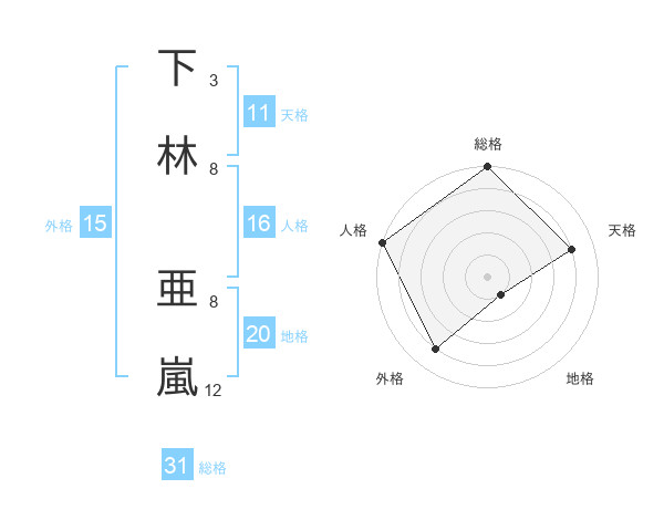 下林 亜嵐さんを姓名の画数から五運を鑑定