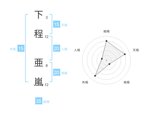下程 亜嵐さんの外格は15画の4点!