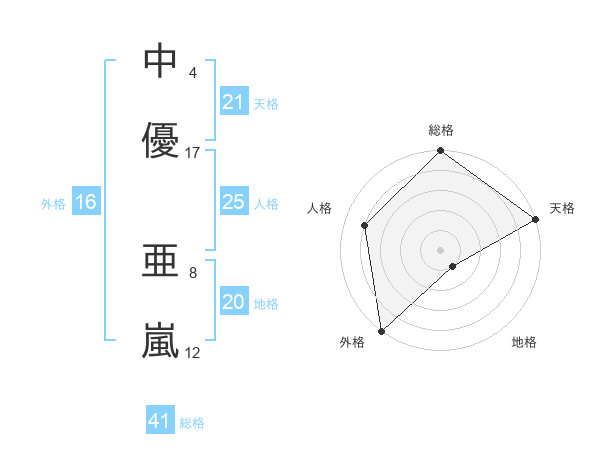 中優 亜嵐さんを姓名の画数から五運を鑑定