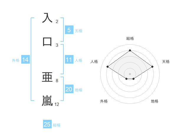 入口 亜嵐さんを姓名の画数から五運を鑑定