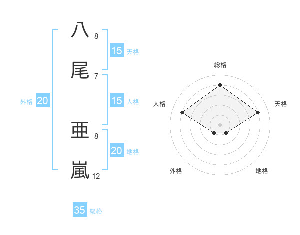 八尾 亜嵐さんの地格は20画の1点!