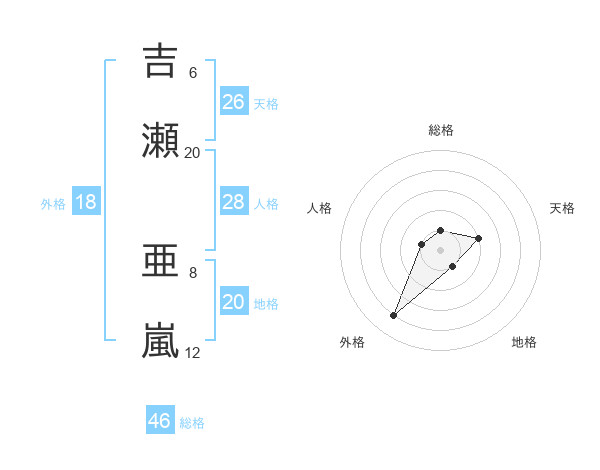 吉瀬 亜嵐さんの天格は26画の2点!