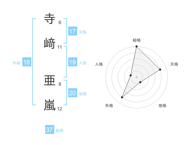 寺﨑 亜嵐さんの総格は37画の5点!