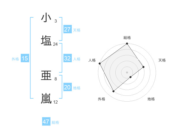 小塩 亜嵐さんを姓名の画数から五運を鑑定