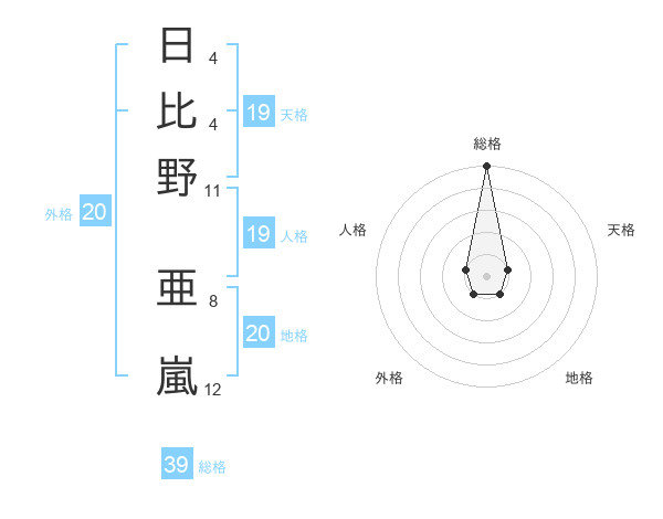 日比野 亜嵐さんを姓名の画数から五運を鑑定