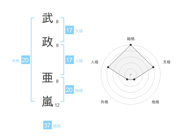 武政 亜嵐さんの天格は17画の4点!