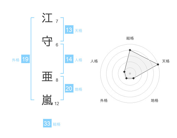 江守 亜嵐さんの天格は13画の5点!