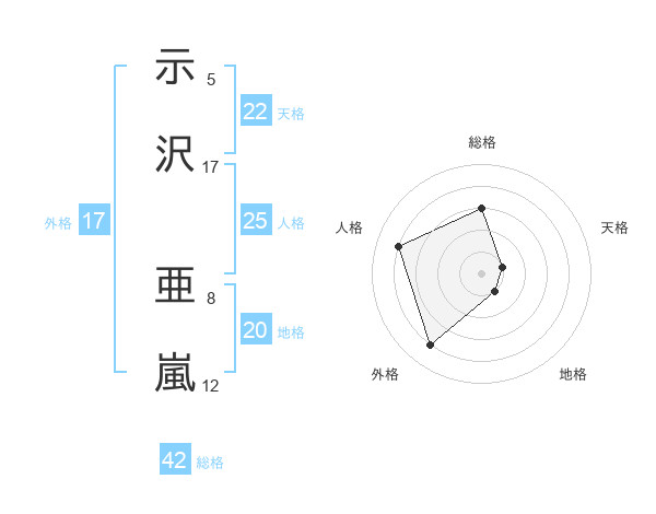 示沢 亜嵐さんの外格は17画の4点!