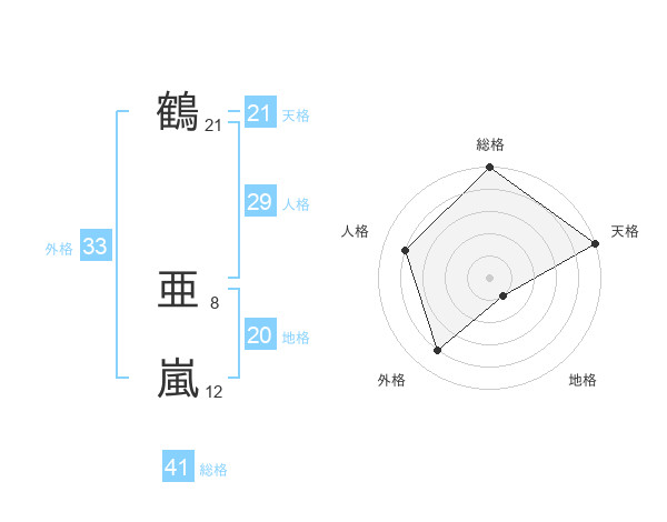 鶴 亜嵐さんの天格は21画の5点!