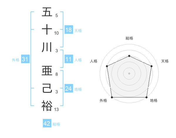 五十川 亜己裕さんを姓名の画数から五運を鑑定