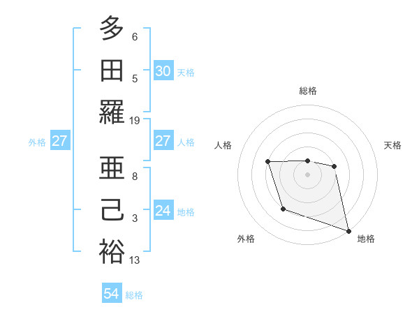 多田羅 亜己裕さんを姓名の画数から五運を鑑定