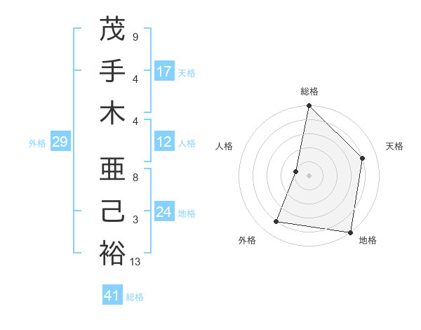 茂手木 亜己裕さんを姓名の画数から五運を鑑定