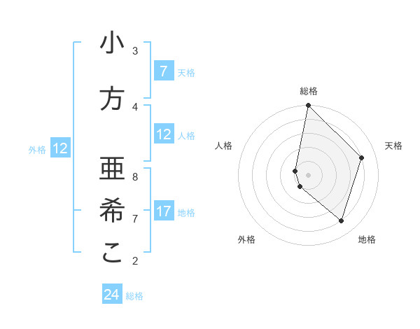 小方 亜希こさんの天格は7画の4点!
