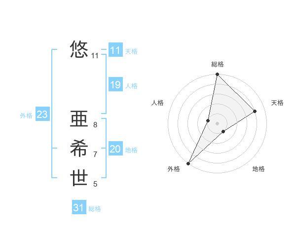 悠 亜希世さんの総格は31画の5点!