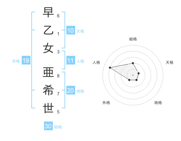 早乙女 亜希世さんを姓名の画数から五運を鑑定