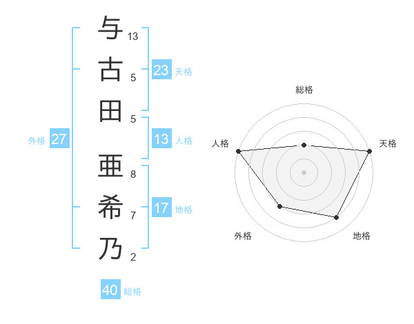 与古田 亜希乃さんの天格は23画の5点!