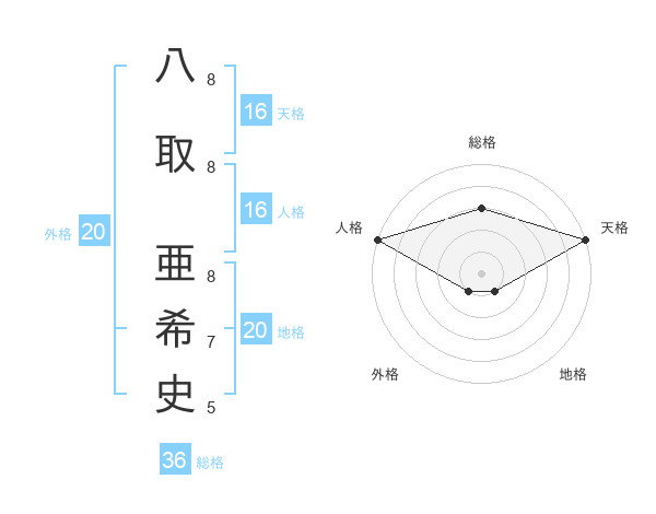 八取 亜希史さんの天格は16画の5点!