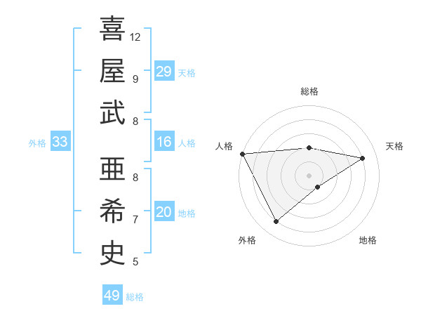 喜屋武 亜希史さんを姓名の画数から五運を鑑定