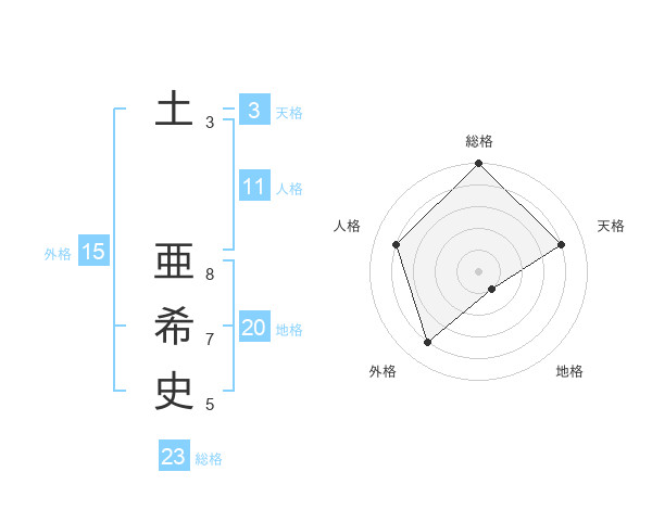 土 亜希史さんの総格は23画の5点!