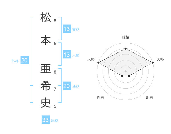 松本 亜希史さんを姓名の画数から五運を鑑定
