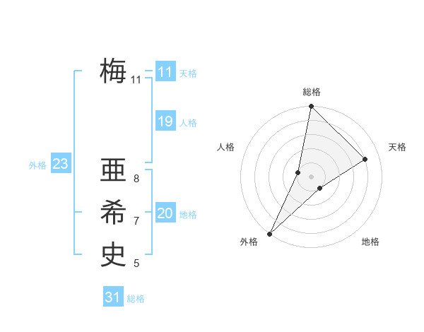 梅 亜希史さんの総格は31画の5点!
