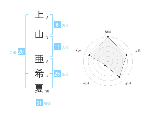 上山 亜希夏さんを姓名の画数から五運を鑑定