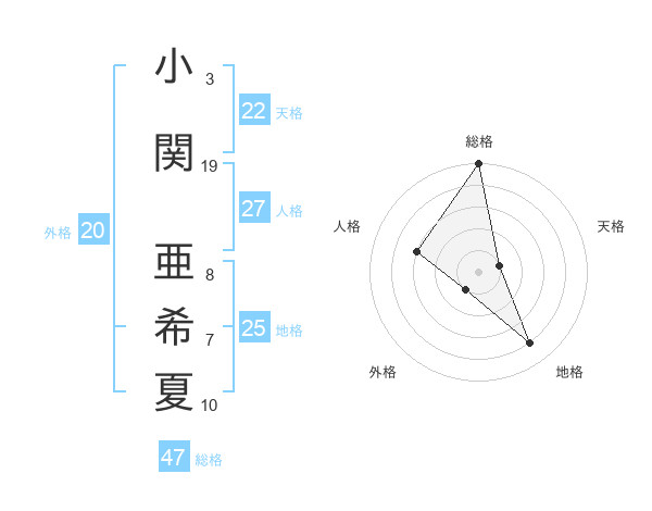 小関 亜希夏さんの総格は47画の5点!