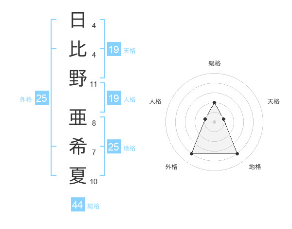 日比野 亜希夏さんを姓名の画数から五運を鑑定