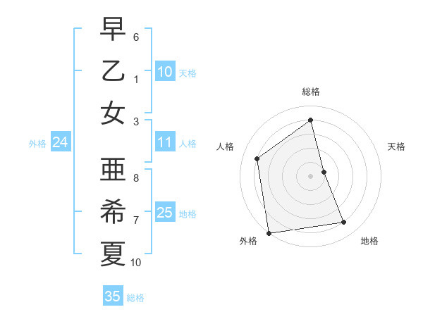 早乙女 亜希夏さんの総格は35画の4点!