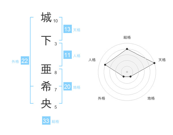 城下 亜希央さんを姓名の画数から五運を鑑定