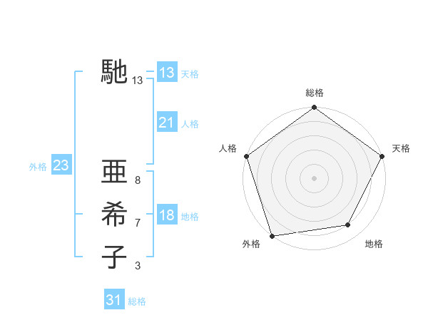 馳 亜希子さんの総格は31画の5点!