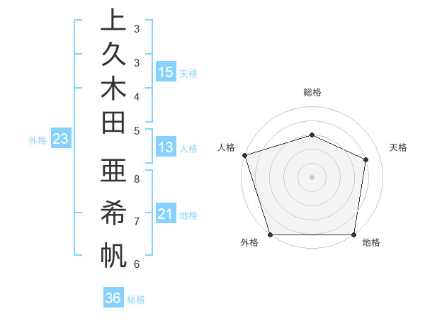 上久木田 亜希帆さんを姓名の画数から五運を鑑定