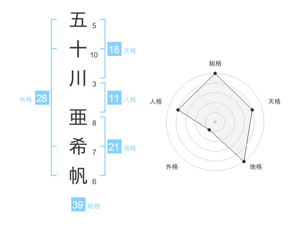 五十川 亜希帆さんを姓名の画数から五運を鑑定
