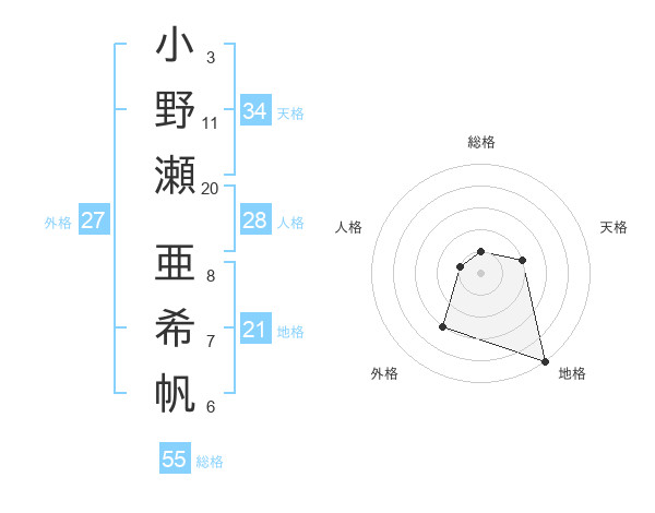小野瀬 亜希帆さんを姓名の画数から五運を鑑定